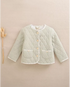 Chaqueta acolchada bebé niña verde con ribetes blancos y estampado de hojas, bolsillos y botones de madera delanteros, cálida, cómoda y encantadora. N05