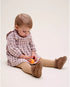 Vestido de bebé niña corte evasé cuadros malva y beige con volantes laterales en la parte delantera y trasera, manga larga y cierre con botones de madera. N44