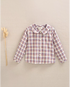 Camisa de bebé niño cuadros beige claro, morado y teja, cuello pico, manga larga y cierre delantero con botones de madera, cómoda y con estilo encantador. N121