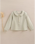 Camisa de bebé niño muselina verde, manga larga, cuello redondo y cierre delantero con botones de madera, cómoda y elegante para cualquier ocasión. N15