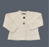 Chaqueta de punto en color blanco roto con botones de madera. Fabricada en dralón de lana , un tejido hipoalergénico , suave al tacto y cálido , perfecto para la piel delicada de nuestros peques .