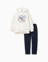 Sudadera con capucha + leggings perchados para niña, blanco/azul oscuro