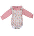 Conjunto para bebé niña formado por camisa en bambula rosa empolvado con cuello bebé ondulado y puños fruncidos, y peto en tejido floral en tonos pastel. Suave, delicado y lleno de encanto para los días más especiales..