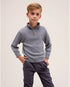 Jersey de niño gris de punto, cuello alto con cremallera y manga larga, moderno, cómodo y perfecto para abrigar con estilo.N159