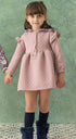 Confeccionado en tejido suave y calentito con diseño de rombos, este vestido rosa empolvado destaca por su cuello y volantes en estampado floral, que aportan un toque delicado y femenino. Lleva abotonado delantero y goma en los puños para un ajuste cómodo. 0025733