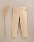 Pantalón de niño largo beige elástico de algodón, cintura con goma trasera ajustable, corte recto y cierre delantero, cómodo y versátil..