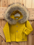 Trenka de punto con botones de madera y pelo natural en capucha desmontable . 100% acrílico de gran calidad , hipoalergénico y muy suave al tacto .