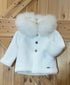 Abrigo de punto forrado con suave pelito, diseñado para brindar estilo y calidez. Con capucha desmontable decorada con pelo natural al tono, este abrigo destaca por su gran calidad, materiales de primera y una textura inigualable. Elegancia y confort en cada detalle.
