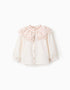 Blusa de popelina con detalles bordados para niña, blanco/rosa