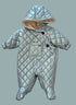 Bolso acolchado, azul perlado con apertura de botones y cremallera lateral, forrado entero de pelito