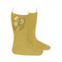 Calcetines altos algodón con lazo grogrén lateral MOSTAZA