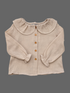 Camisa de bambula arena de manga larga, fruncido en los puños y botones de madera frontales.