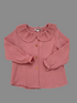 Camisa de bambula rosa de manga larga, fruncido en los puños y botones de madera frontales.