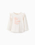 Camiseta de manga larga con estampado en relieve para niña, beige