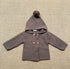 Chaqueta de punto trenzado, con capucha rematada en un simpático pompón y cierre delantero con cuatro botones de madera. Su diseño cómodo, cálido y atemporal la convierte en una prenda imprescindible para los días frescos, aportando estilo y abrigo a los más pequeños.
