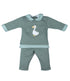 Conjunto de bebé tipo chándal en tono verde grisáceo, compuesto por sudadera y pantalón largo.