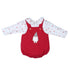 Camisa en fondo blanco, cuello bebé en bambula con estampado de setas y peto tipo gofre en rojo .