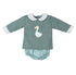 Conjunto sudadera afelpada en verde oliva con cuello bebé estampado de patitos con ranita en vichy verde .