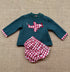 Conjunto de sudadera afelpada en verde botella , dibujo de un avión en el pecho en cuadros blancos y rojos , ranita a juego .