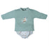sudadera verde afelpada con estampación de un pajarito y ranita estampado de hojas