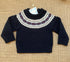 Jersey en color azul marino con cenefa en tonos rojos, azules y piedra . Apertura mediante botones en el cuello