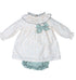 jesusito en fondo blanco estampado de patitos con cuello volante lazo y ranita en vichy verde .