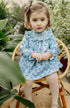 Jesusito en fondo verde cuello fruncido volante y estampado de flores en tonos morados y pistacho