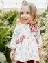 Jesusito con estampado de ositos y detalles en vichy rojo. Incluye cubrepañal a juego, lazo grande decorativo y botones de madera. Con cuello fruncido y volantes en bolsillos. Ideal para un look tierno y con estilo