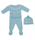 Conjunto tres piezas bebé punto azul con gorro