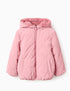 Chaqueta acolchada rosa para niña, con capucha y forro polar. Puños y base elásticos para un ajuste perfecto. Bolsillos laterales. Etiqueta interior para poner el nombre de la niña. Se cierra fácilmente con cremallera. Suave y acogedora! We Care: este artículo está compuesto por materiales reciclados.