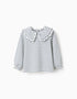 Camiseta a Rayas con Cuello Maxi y Volantes para Niña, Blanco/Azul