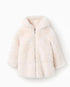 Chaqueta larga de pelo sintético con capucha para niña, beige