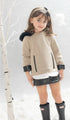 Vestido ideal para las más coquetas ✨, confeccionado en un tejido geométrico exclusivo en tonos beige con detalles en ecopiel negra en los puños y bolsillos. Incorpora falda efecto polipiel acolchada, aportando un estilo moderno y diferente. La capucha desmontable, rematada con pelo suave, permite llevarlo en versión más casual o elegante según la ocasión.